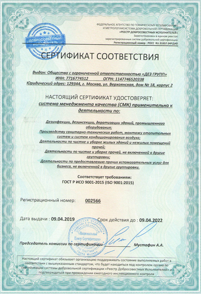 Мы состоим на учете в Роспотребнадзоре, как официальная СЭС, действующая на территории Москвы и Московской области. image description